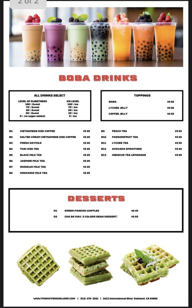 Welcome to Pho Huyen & Banh Mi, a delightful Vietnamese eatery located at 1612 International Blvd, Oakland, CA. This gem specializes in authentic noodle soups and banh mi sandwiches, making it a haven for lovers of Vietnamese cuisine. The menu offers an enticing variety of appetizers, including crispy fried chicken wings and flavorful vegetarian spring rolls.